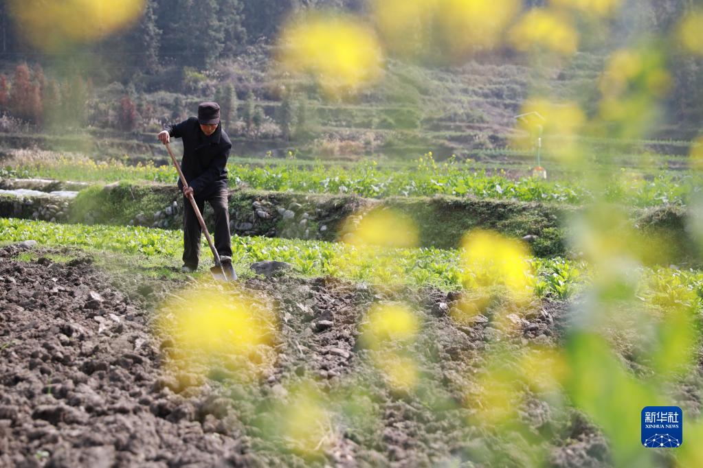 2月15日,在湖南省湘西土家族苗族自治州吉首市乾州街道西門口村,村民在田間勞作。