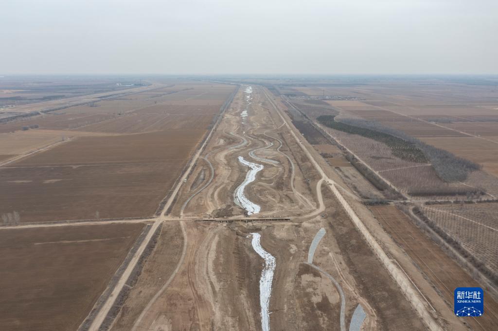 這是雄安唐河河谷郊野公園項目現場(2月15日攝,無人機照片)。