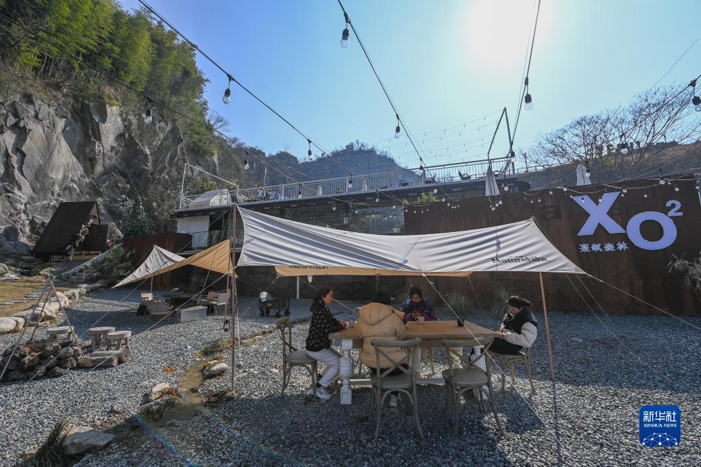 2月16日,游客在道場鄉(xiāng)紅里山村的熹氧森林休憩、喝咖啡。熹氧森林依托廢棄礦坑而建,為游客打造可以輕餐、咖啡、露營、燒烤的體驗地。