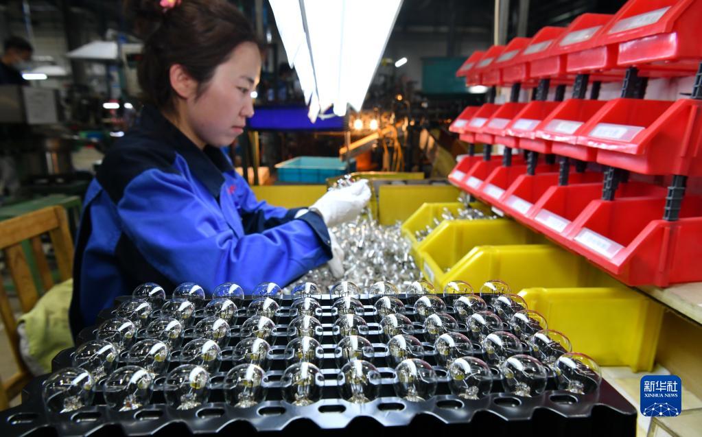 2月16日,在位于獻縣的滄州來福汽車照明集團燈泡車間,工人在檢驗產品質量。