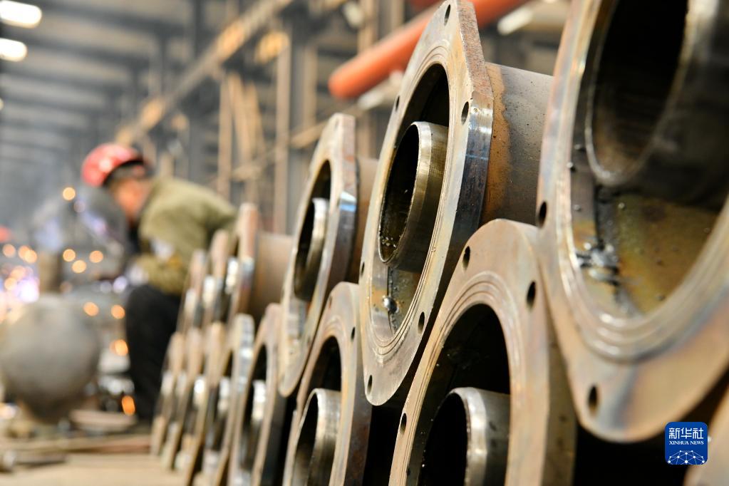 2月16日,在位于獻縣的河北環科除塵設備有限公司生產車間,工人在進行焊接作業。