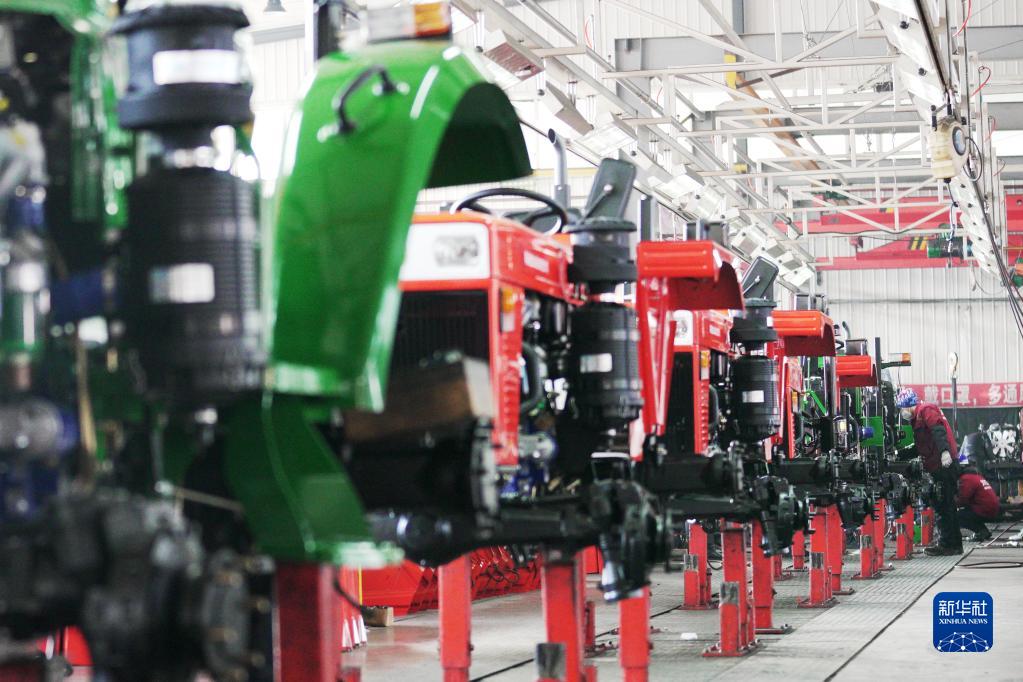 時下,黑龍江省農機生產企業開足馬力生產訂單農機產品,滿足春耕備耕市場需求。在拖拉機專業制造企業——佳木斯驥馳拖拉機制造有限公司裝配車間,工人忙著組裝拖拉機,目前企業滿負荷生產,確保及時交付訂單。