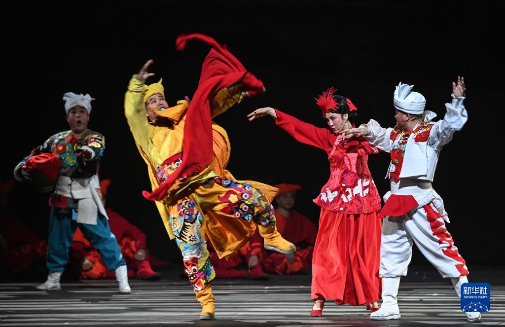 2月16日在首屆中國非物質文化遺產保護年會展演活動上拍攝的陜北秧歌劇《米脂婆姨綏德漢》演出現場。
