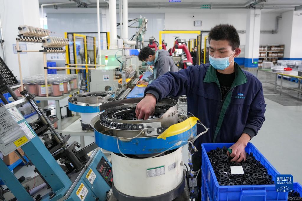 2月16日,員工在位于文登經(jīng)濟開發(fā)區(qū)的邁世騰科技(山東)有限公司生產(chǎn)車間內(nèi)加工電子元器件。這是一家專業(yè)設(shè)計、研發(fā)、生產(chǎn)及銷售新型集成電源板用電子元器件、新型電子專用材料的外貿(mào)型企業(yè)。
