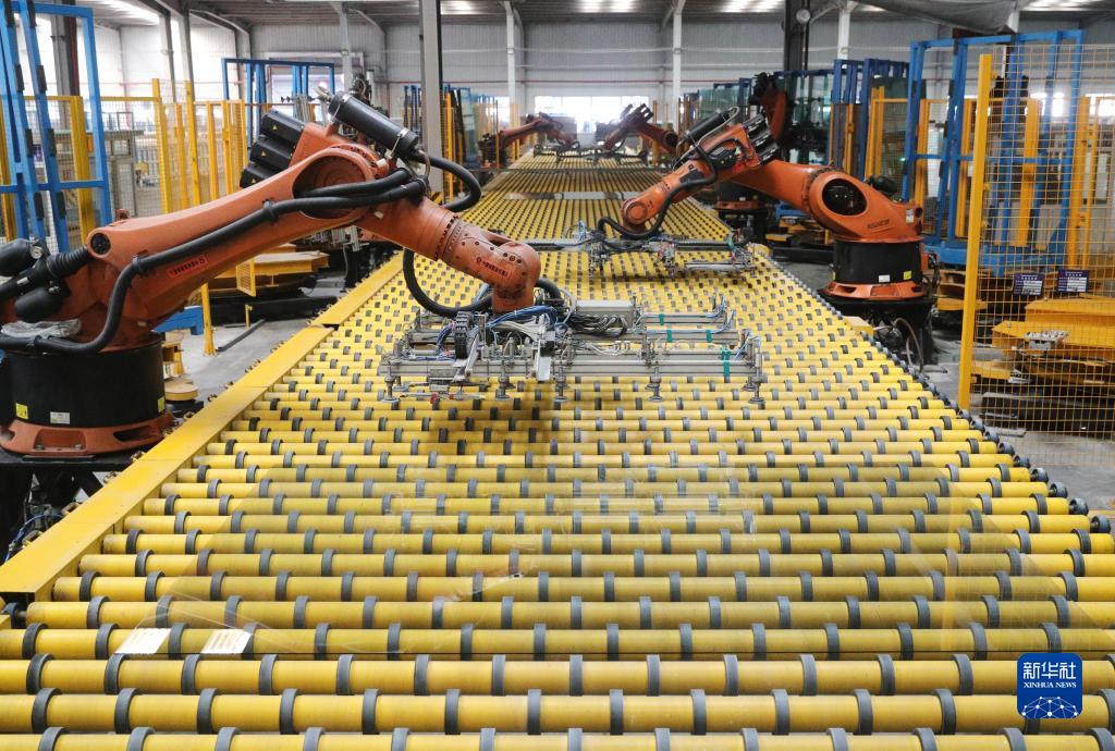 2月17日,秦皇島一家玻璃企業的機器手在工作中。