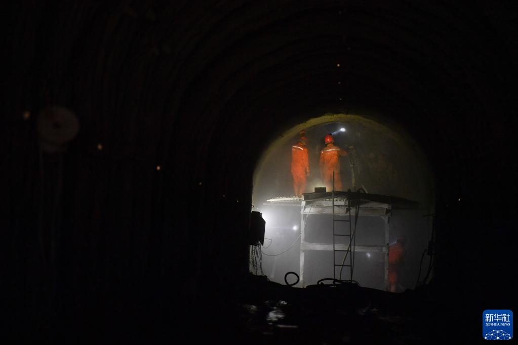 2月7日,施工人員在位于陜西省商洛市商州區的西氣東輸三線工程陜西段劉村隧道作業。