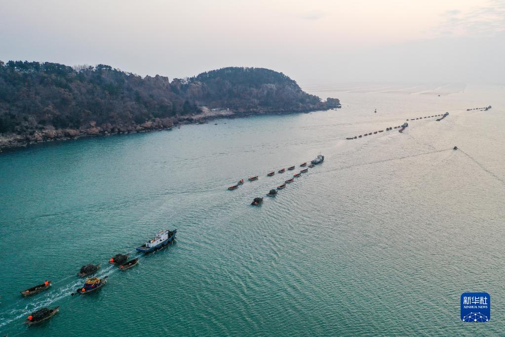 目前正值山東威海榮成市春季海上漁業(yè)養(yǎng)殖管護(hù)時(shí)節(jié),各海域四十多萬(wàn)畝養(yǎng)殖海區(qū)內(nèi),漁業(yè)工人駕駛船只穿梭往來(lái),進(jìn)行浮漂更換、投喂餌料等作業(yè),一派“耕海牧漁”繁忙景象。