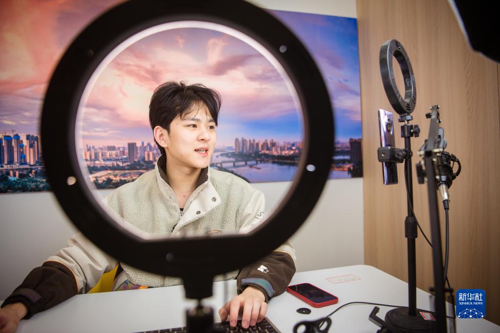 2月17日,工作人員通過直播介紹崗位信息。
