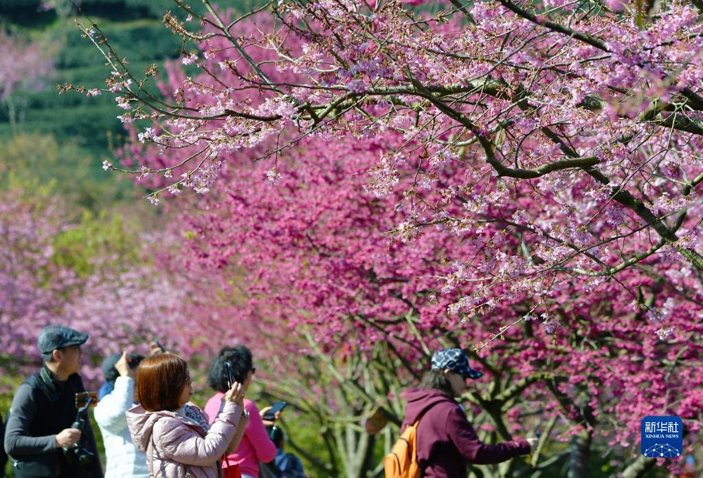 近日,福建省漳平市永福鎮臺品櫻花茶園里的櫻花迎來最佳賞花期,吸引眾多游客觀賞。