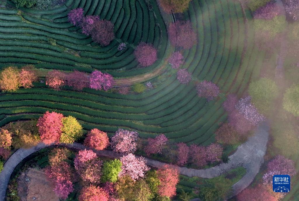 近日,福建省漳平市永福鎮臺品櫻花茶園里的櫻花迎來最佳賞花期,吸引眾多游客觀賞。