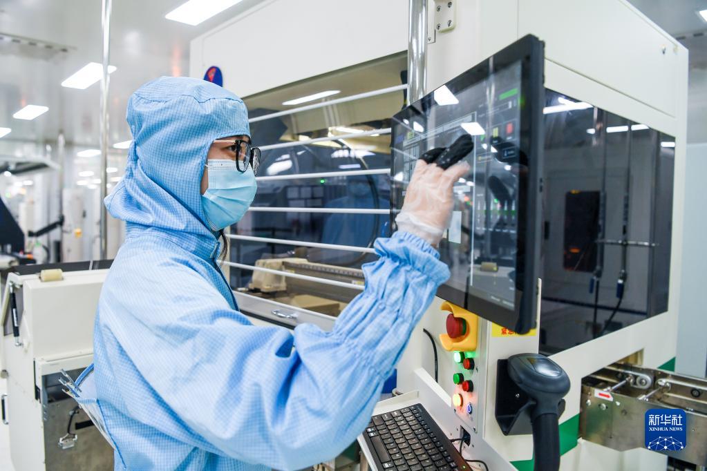 江蘇宏微科技股份有限公司工作人員在操作生產設備加工產品(2月15日攝)。該公司生產的電力半導體器件,廣泛應用于工業控制、家用電器、電動汽車、新能源領域。