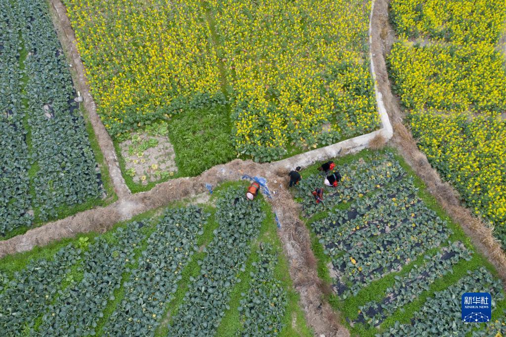 2月17日,貴州省從江縣貫洞鎮(zhèn)的農(nóng)民在地里勞作(無人機(jī)照片)。