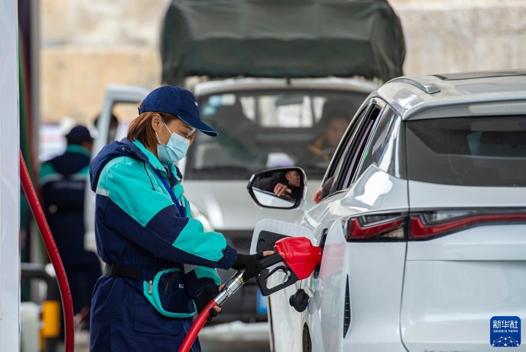 2月17日,貴州省從江縣一加油站工作人員給汽車加油。