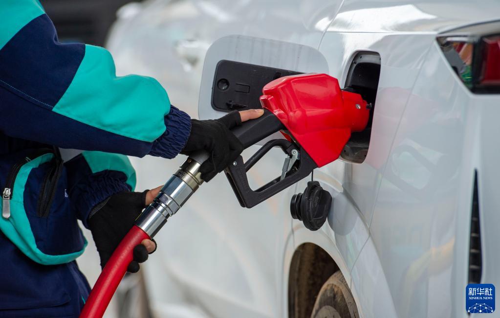2月17日,貴州省從江縣一加油站工作人員給汽車加油。