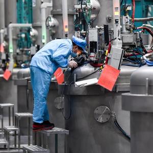 2月17日,在烏海市京運通新材料科技有限公司,工人在生產車間作業。
