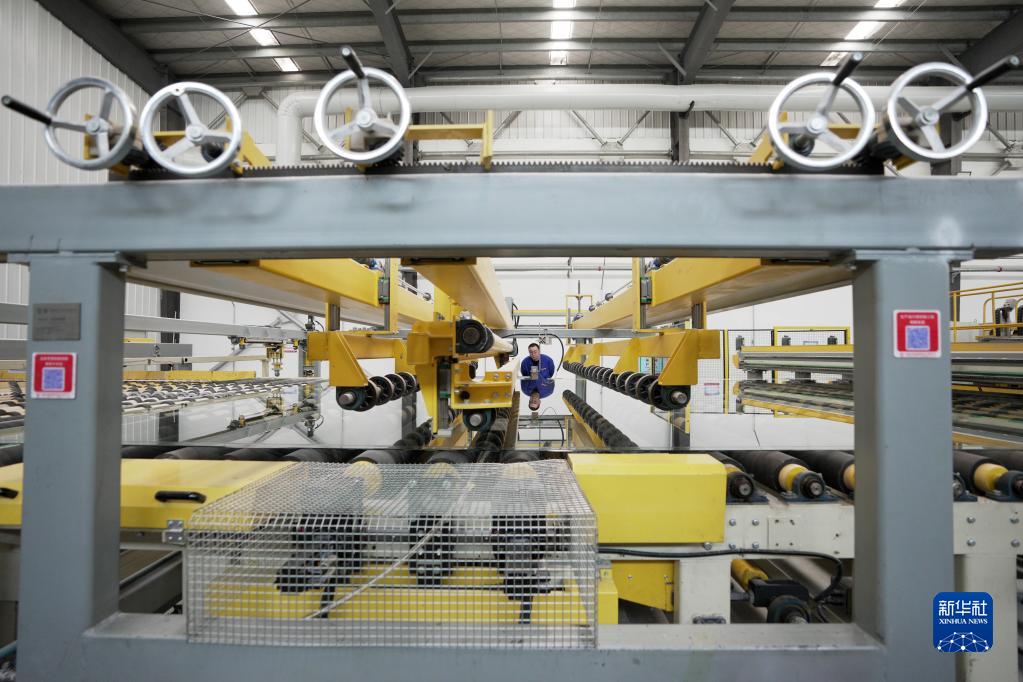 2月17日,在中建材佳星玻璃(黑龍江)有限公司車間內,工作人員在智能生產線旁巡檢。