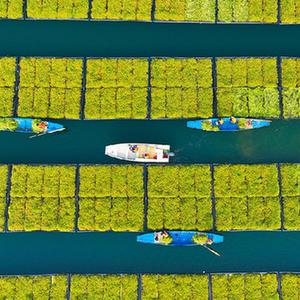 近年來,浙江省杭州市淳安縣在千島湖典型庫灣、入湖口等區域,積極運用生態浮島水上植物無土栽培技術種植空心菜、水芹菜等水生蔬菜,直接吸收庫區水體中氮磷等元素,從而能夠有效地降低水體中營養物質的含量,提升水質。近日,水生蔬菜進入采收季節,“湖上菜園”呈現春收繁忙景象。