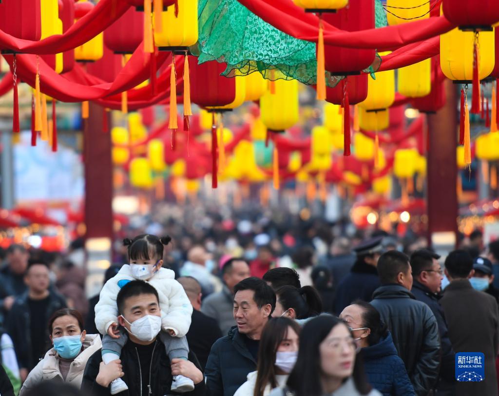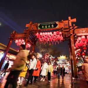 游客在榆林老街的非遺大集游覽(2月17日攝)。