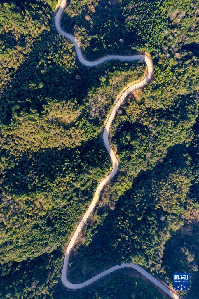 2月16日拍攝的通往小滄畬族鄉七里村的盤山公路(無人機照片)。