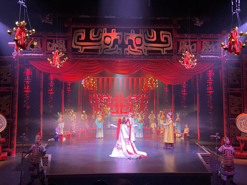 2月17日晚,劇目《殷墟遺夢(mèng)》在河南安陽(yáng)殷墟考古文旅小鎮(zhèn)上演。該劇目以殷商文化結(jié)合小鎮(zhèn)旅游業(yè)態(tài),作為輸出文化內(nèi)核,打造文化交流平臺(tái),成為安陽(yáng)文化的新名片。新華網(wǎng) 宿鑫 攝