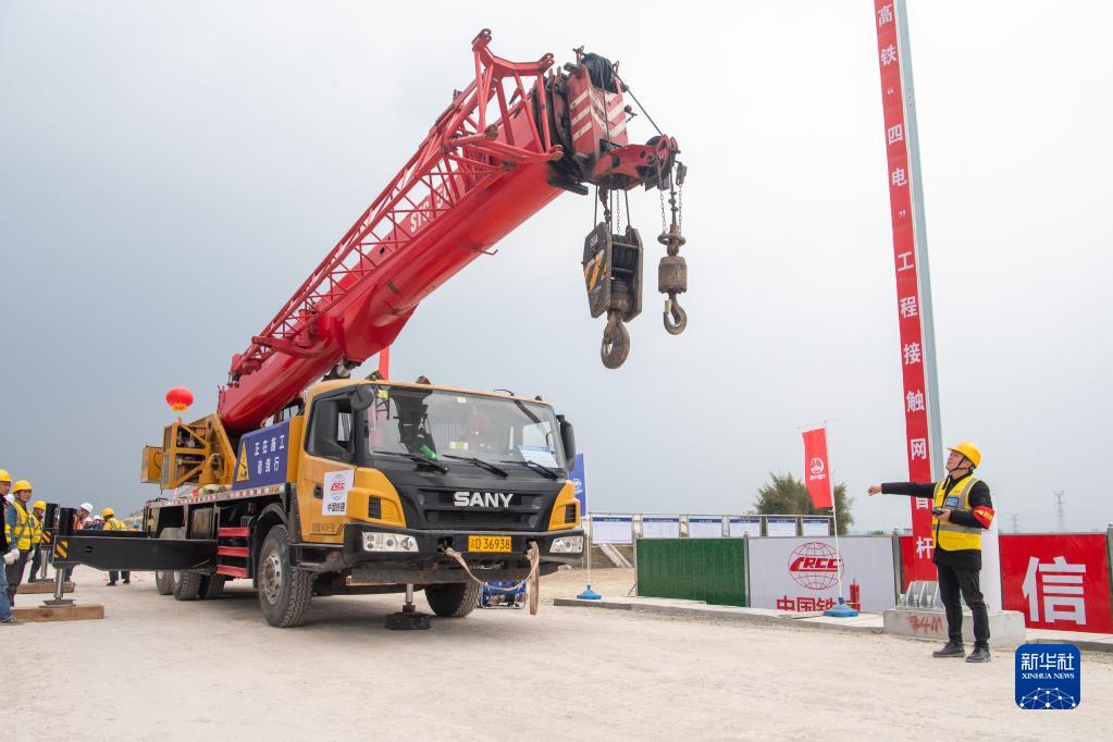 當日,在渝昆高鐵重慶永川區施工現場,施工人員將首根接觸網桿吊裝到位,標志著渝昆高鐵川渝段供電、通信、信號、電力“四電”工程正式啟動。渝昆高鐵是全國鐵路網“八縱八橫”主通道之一的京昆通道的重要組成部分,設計時速350公里。