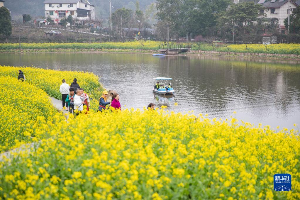 近日,重慶市巴南區二圣鎮集體村云林天鄉景區的油菜花迎春綻放,吸引眾多游客前來觀賞。