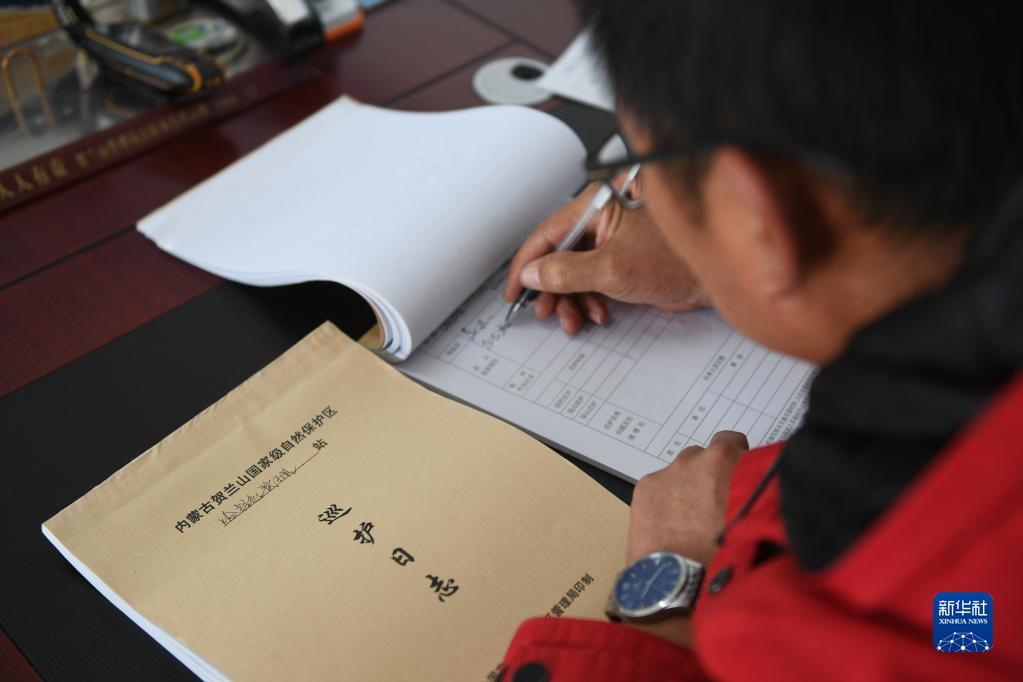 2月18日,哈拉烏管理站副站長(zhǎng)李東在記錄巡護(hù)日志。