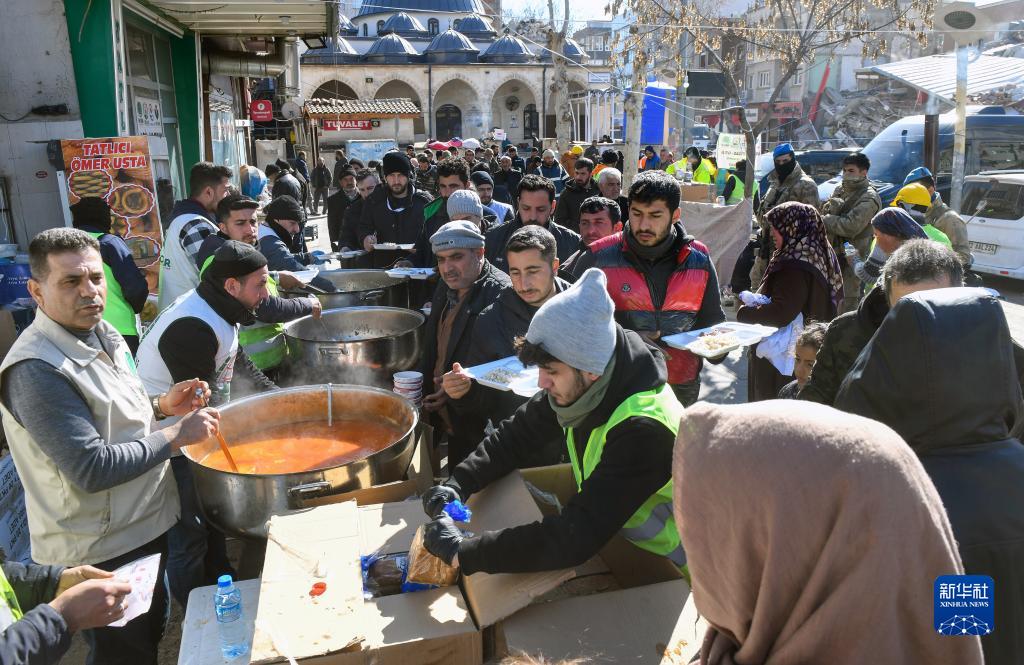 2月18日,人們在土耳其南部阿德亞曼省阿德亞曼市領(lǐng)取食物。