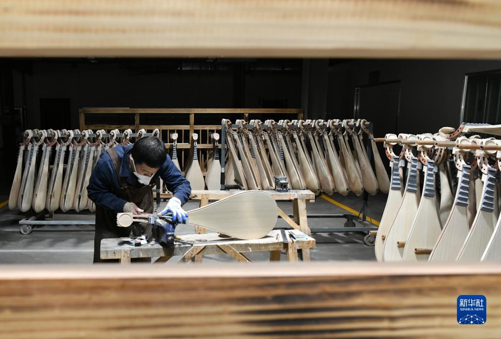 2月18日,河北省肅寧縣一家民族樂器生產(chǎn)企業(yè)的工人在生產(chǎn)車間內(nèi)制作樂器。