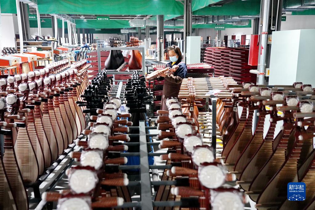 2月18日,河北省肅寧縣一家民族樂器生產(chǎn)企業(yè)的工人在生產(chǎn)車間內(nèi)整理樂器。