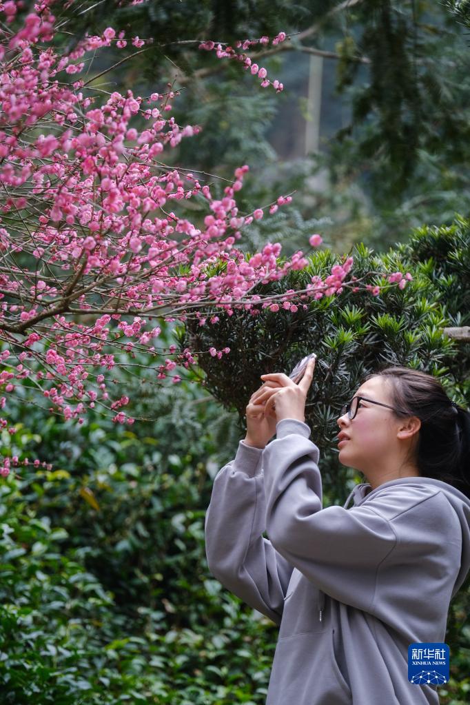當日是雨水節氣,浙江省諸暨市東白湖鎮斯宅村依山而建的斯舜梅園吸引了不少游客前來踏春賞梅。該梅園種植近500株梅樹,主要有紅梅、白梅、垂枝梅、臘梅等10多個品種的梅花,是當地鄉村旅游的一大特色。