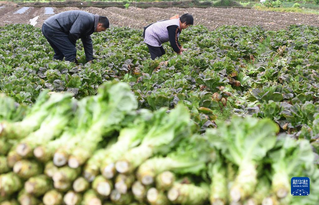 2月19日,在貴州省遵義市余慶縣子營街道上里社區,農民在采收萵筍。