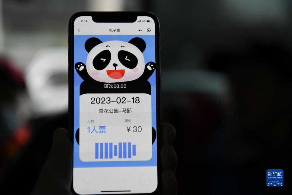 2月18日,市民展示自己購(gòu)買(mǎi)的“草莓采摘”定制公交專(zhuān)線電子票。
