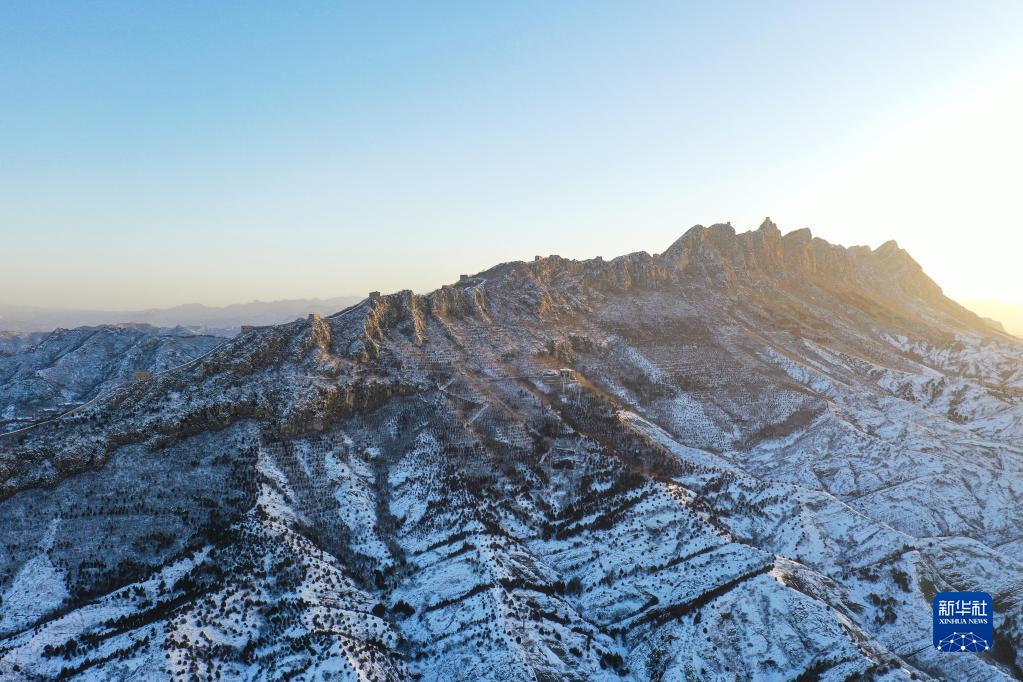 這是2月19日在晨曦中拍攝的雪后司馬臺長城(無人機照片)。