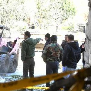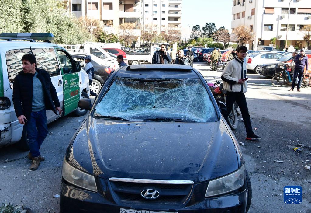 這是2月19日在敘利亞大馬士革拍攝的在導(dǎo)彈襲擊中受損的車(chē)輛。