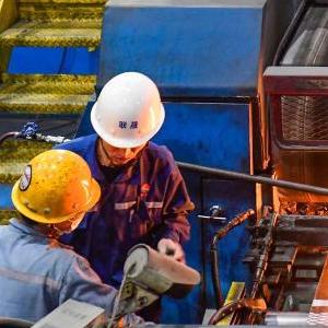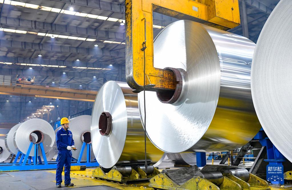 2月19日,在霍林郭勒市一家鋁業(yè)公司,工人在鋁箔生產(chǎn)線上作業(yè)。