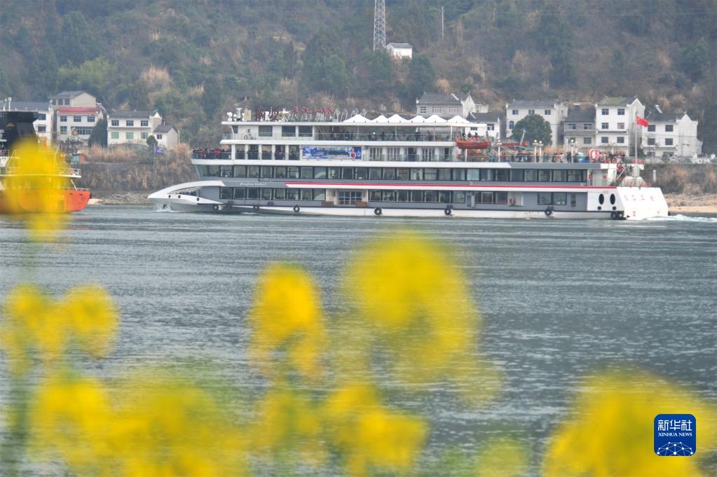 “長江三峽8號”游船在湖北省宜昌市夷陵區(qū)樂天溪段水域載著游客觀光游覽(2月14日攝)。