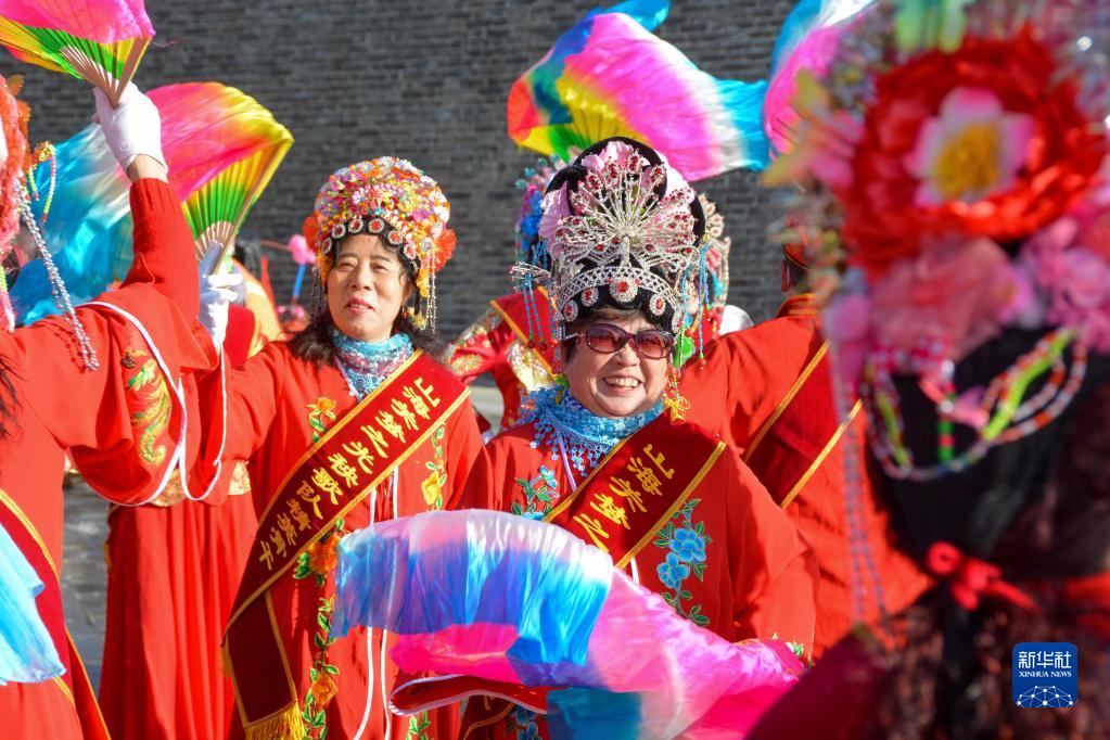 2月19日,在河北省秦皇島市山海關(guān)區(qū),民間藝人進行秧歌表演。