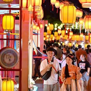 游客在海口日月廣場逛古風市集(2月19日攝)。