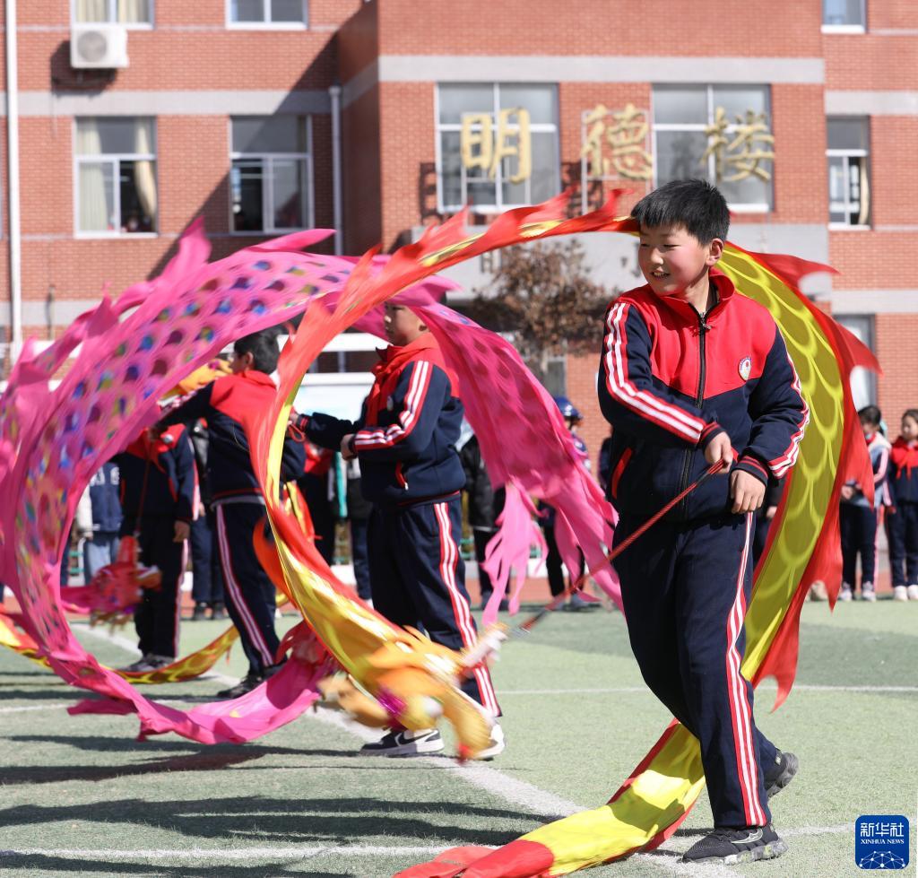 2月21日,山東省臨沂市沂南縣湖頭鎮(zhèn)中心小學(xué)的孩子們?cè)谖椠垜c“二月二”。
