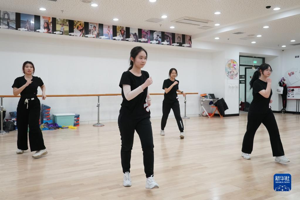 2月20日,在北京大學(xué)附屬中學(xué),學(xué)生在體育課中進(jìn)行健美操練習(xí)。
