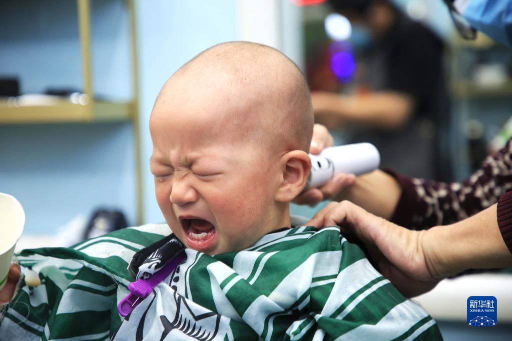當(dāng)日是農(nóng)歷二月初二,許多家長帶著孩子“剃龍頭”,祈求孩子在新一年健康成長。