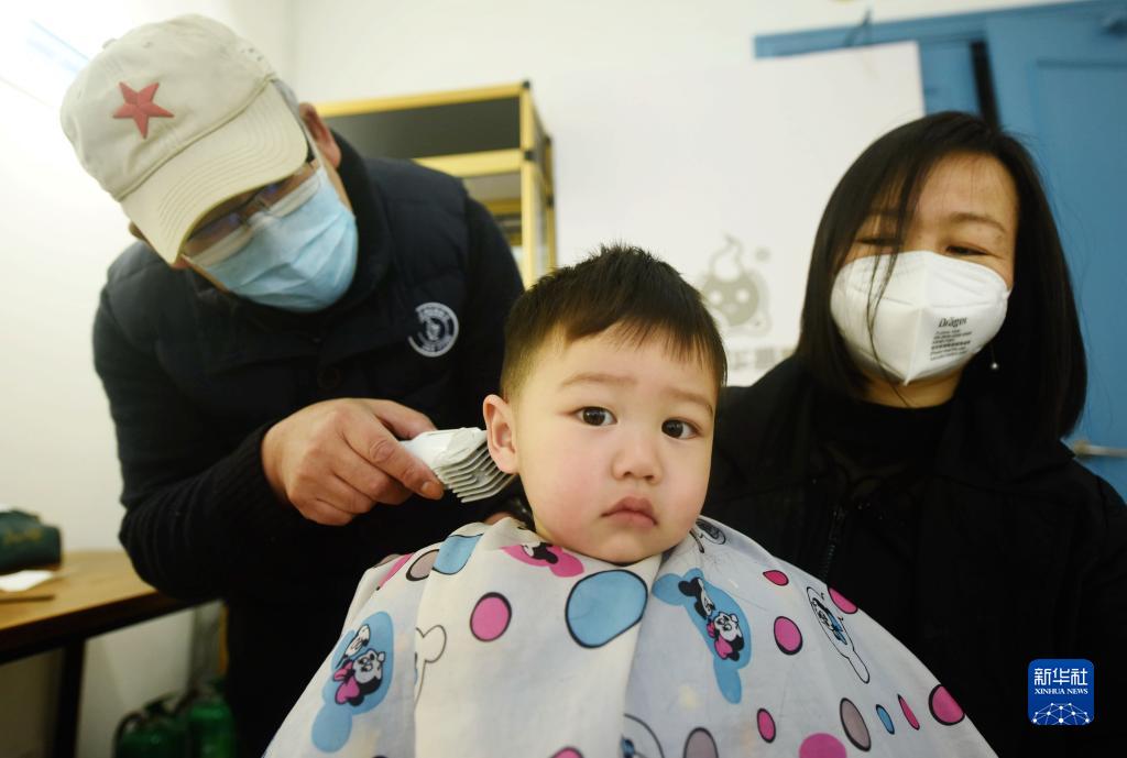 當(dāng)日是農(nóng)歷二月初二,許多家長(zhǎng)帶著孩子“剃龍頭”,祈求孩子在新的一年健康成長(zhǎng)。
