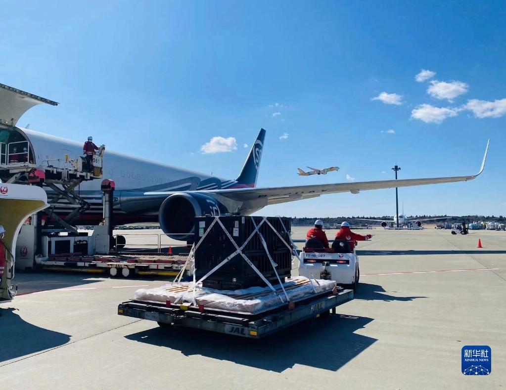 2月21日,在日本東京,大熊貓“香香”即將被送上貨運包機。