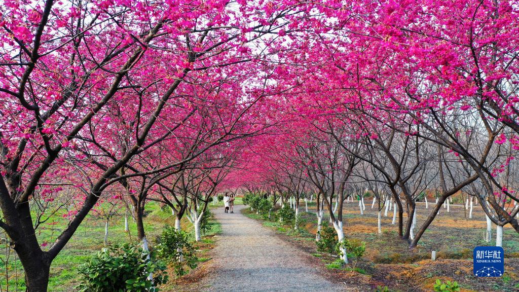 近日,湖南省常寧市羅橋鎮廟山村櫻花園櫻花爛漫,吸引游客前來踏青賞花,樂享春光。
