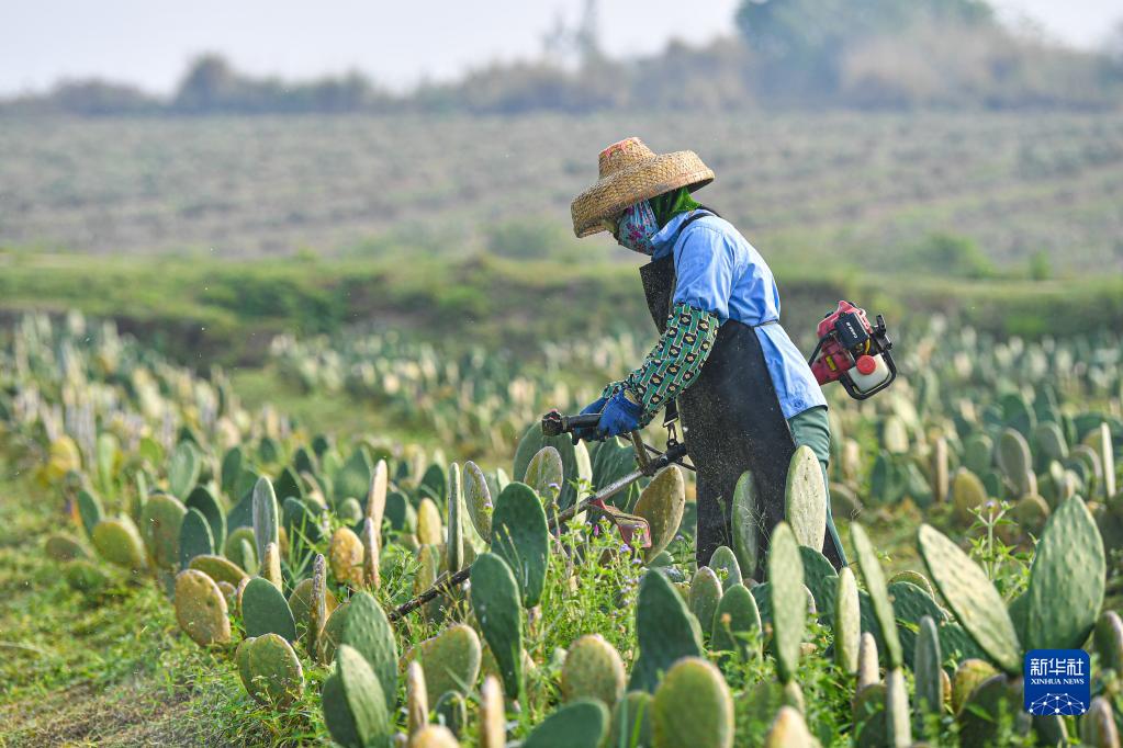 2月20日,工作人員在中美墨仙人掌種植基地勞作。