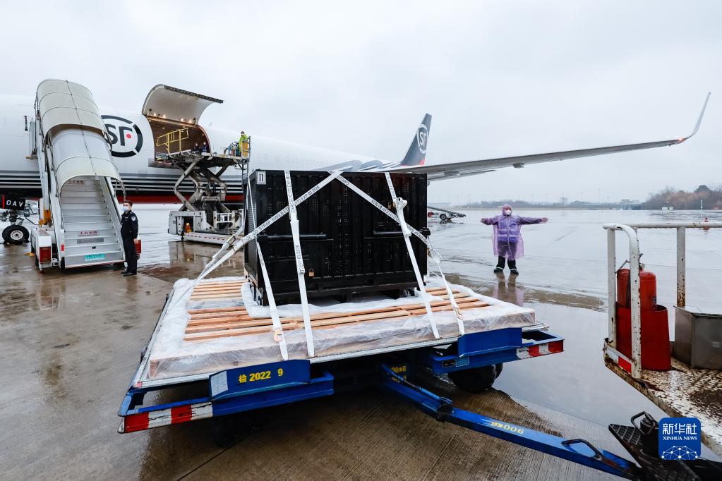 2月21日,大熊貓“香香”搭乘順豐航空貨運包機抵達成都雙流國際機場。