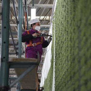 2月21日,在西寧市圣源地毯集團有限公司生產車間,操作工檢查毯面、拔花刺。