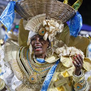2月20日晚,在巴西里約熱內(nèi)盧桑巴大道,桑巴舞校演員參加狂歡節(jié)游行。