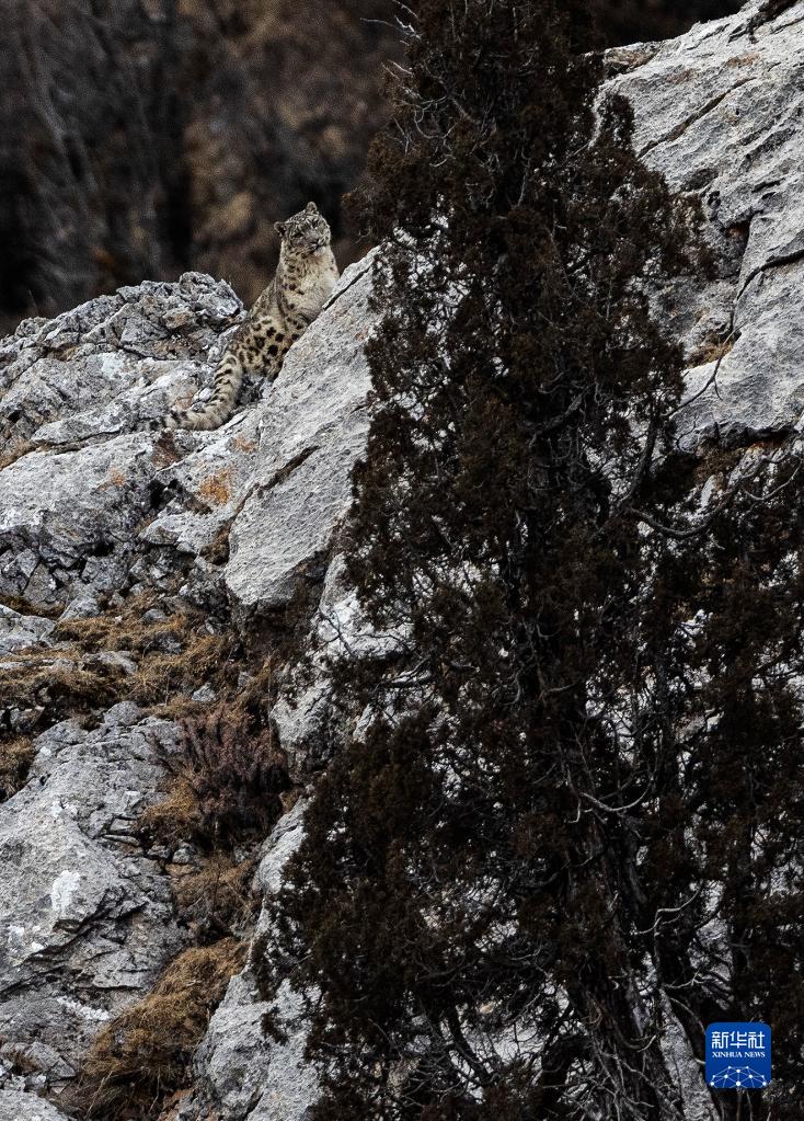 2月21日,在青海省玉樹藏族自治州雜多縣昂賽鄉(xiāng)境內(nèi)的昂賽大峽谷內(nèi),一只雪豹在休息。